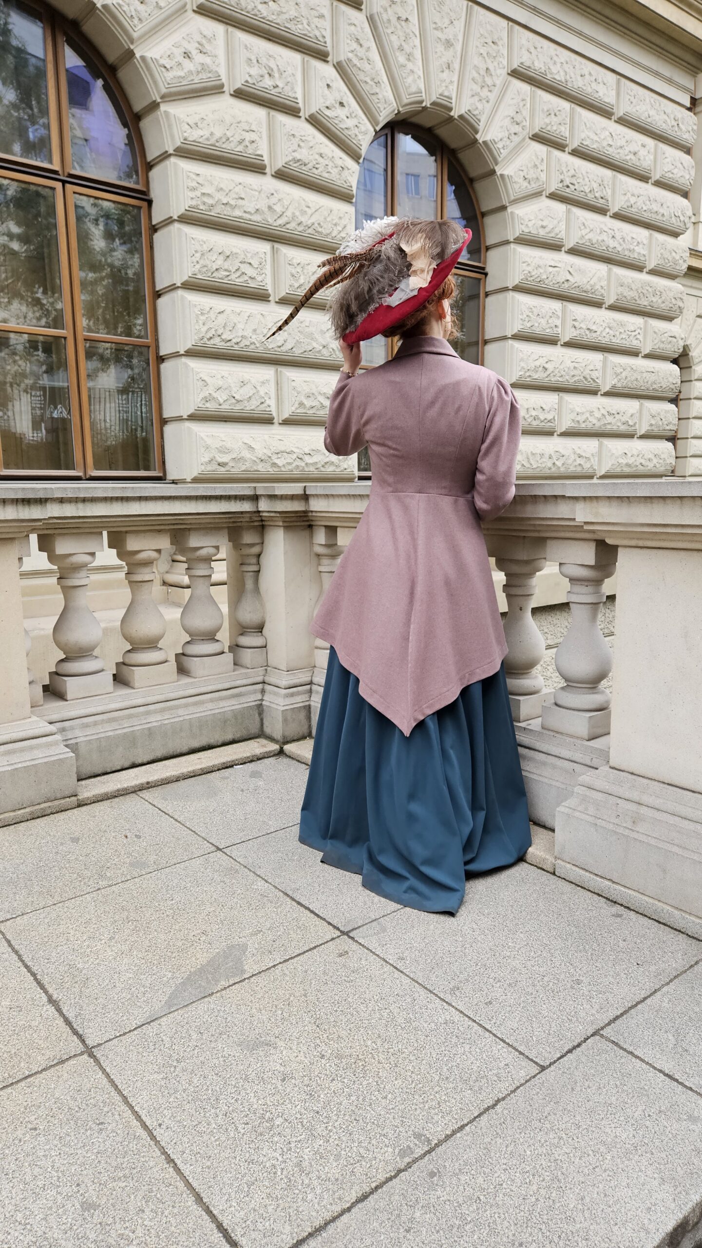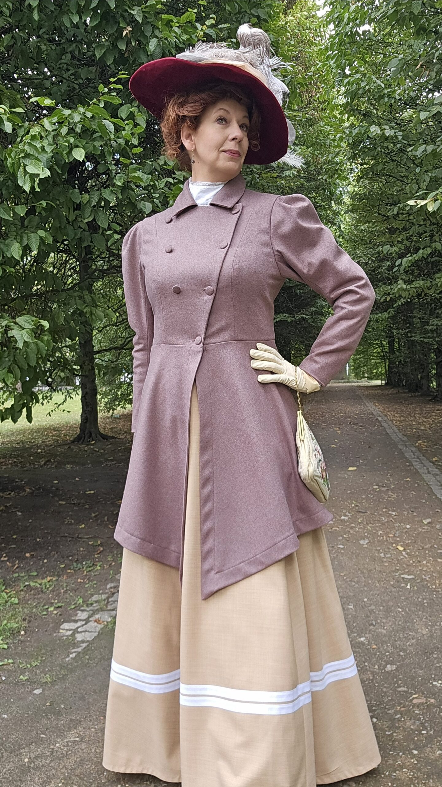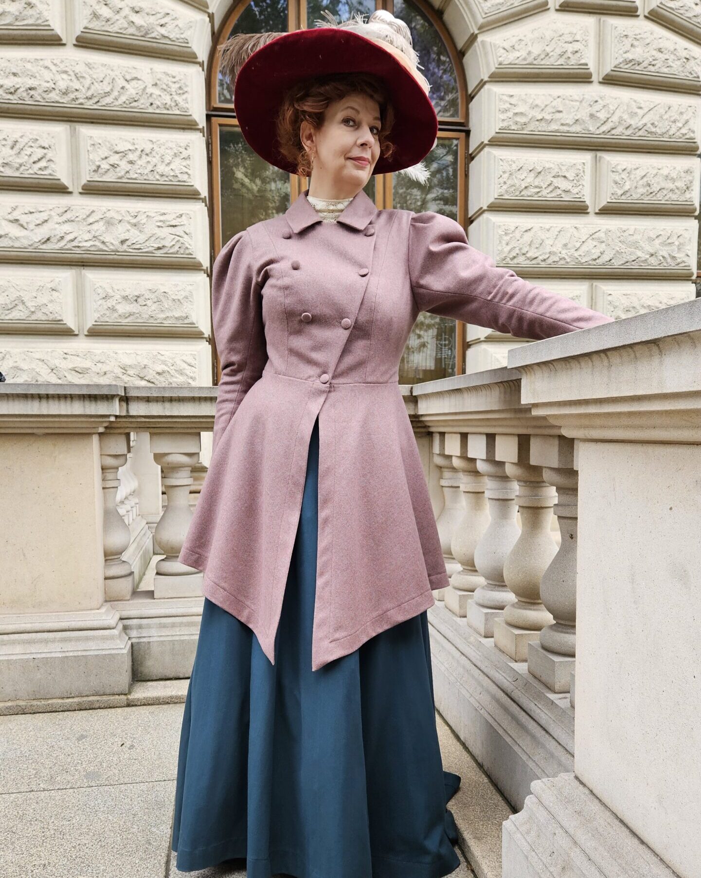 Jacket Leo — handmade Edwardian-style wool jacket, inspired by an original 1905 fashion illustration.